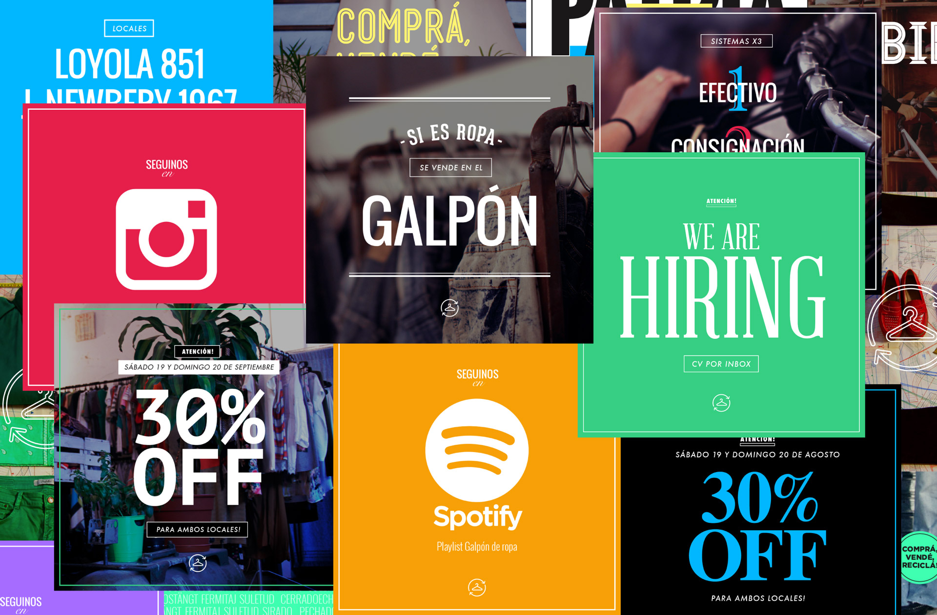 Armamos la nueva identidad visual del Galpón aplicada tanto en piezas digitales como en las de gráfica tradicional, siempre siguiendo el espiritu que los caracteriza, la moda sustentable. -