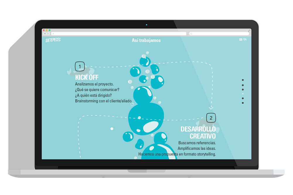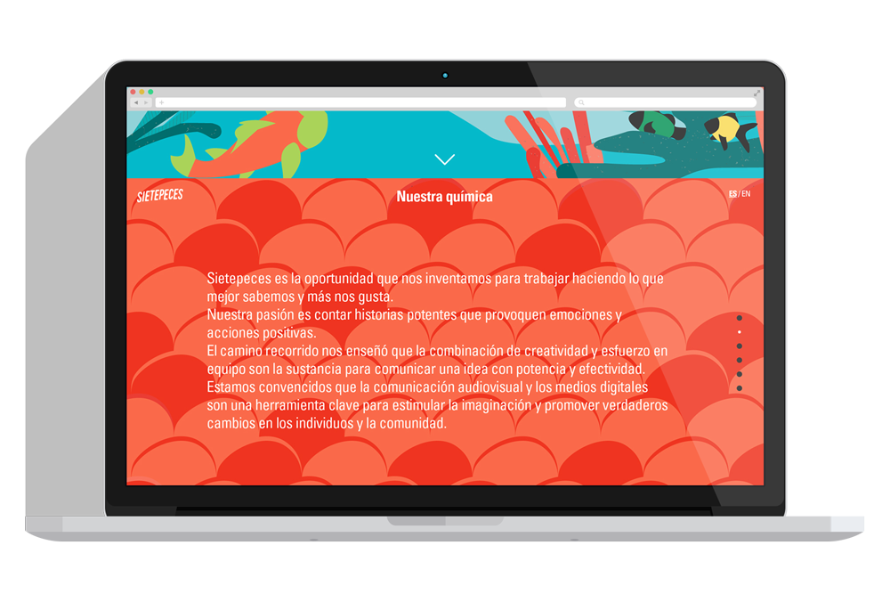 Sietepeces es una productora de contenidos que basa su filosofía en la idea del equipo como un cardumen funcionando como unidad. Hicimos logo, web, tarjetas, redes. -